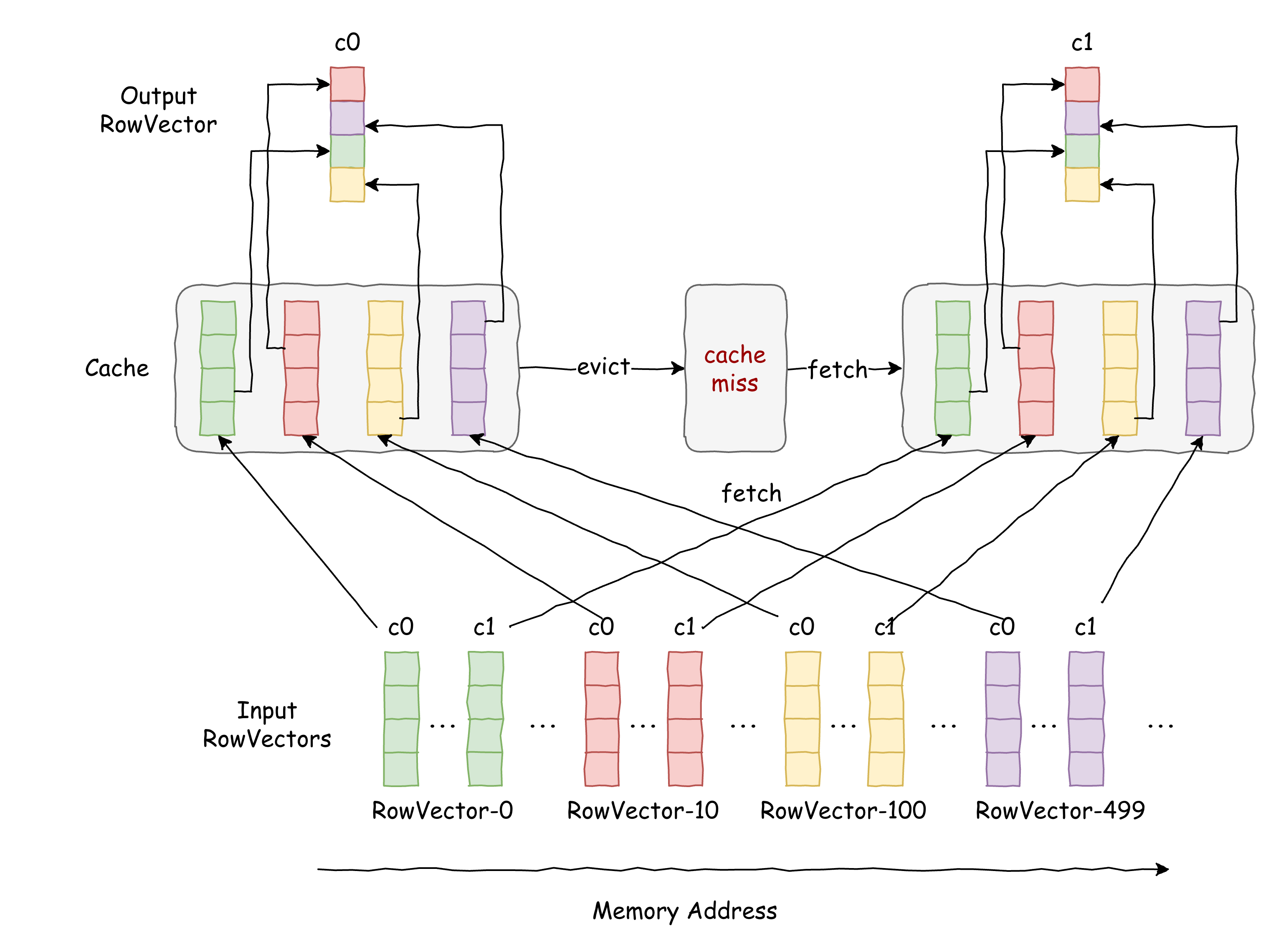 The sorted indices, by nature, offer low predictability. This forces the gather operation for a single output column to jump unpredictably across as many as different input vectors, fetching just one value from each. This random access pattern has two devastating consequences for performance.
